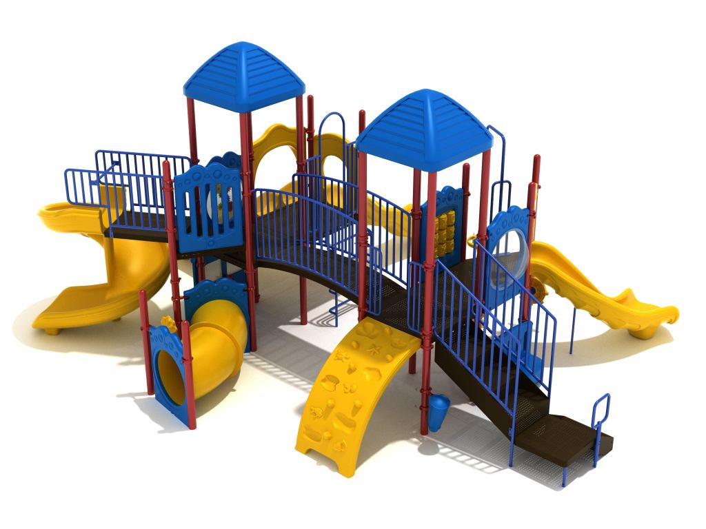 For my particular exercise I recently used I did the following: chin ups 3 sets of 10 repetitions using the hanging bar, 3 sets of 10 repetitions of dips using the bars for the steps leading to the play structure (or the bars making the bridge works too), I utilized the stepping platform (or rock climbing wall of the angle is good enough ) for a challenging plank for 3 sets of 45 seconds, and to finish up I used a picnic table for box jumps for 3 sets of 10 repititions. (Alternatively any high platform on the play structure will work fine so long as you have clearance to do it without bumping into anything).