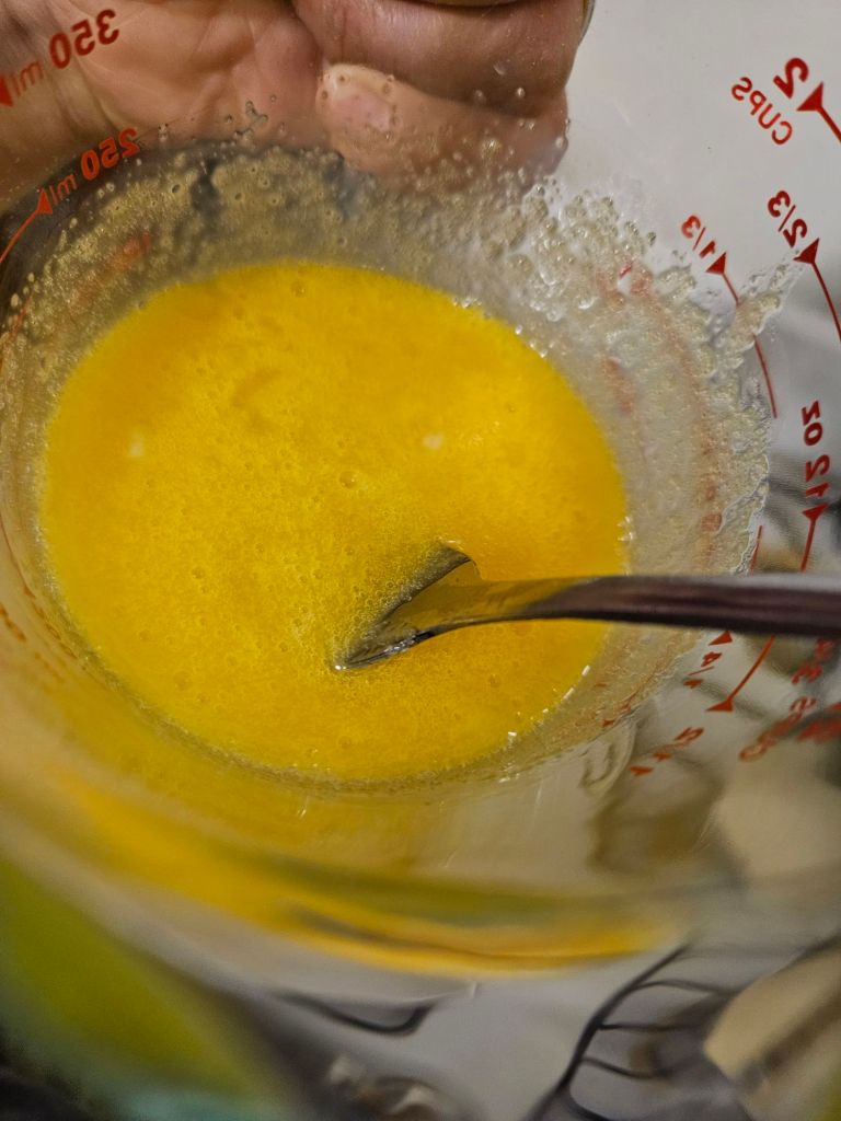 Next, whisk your egg yolks and mix with your sugar and vanilla