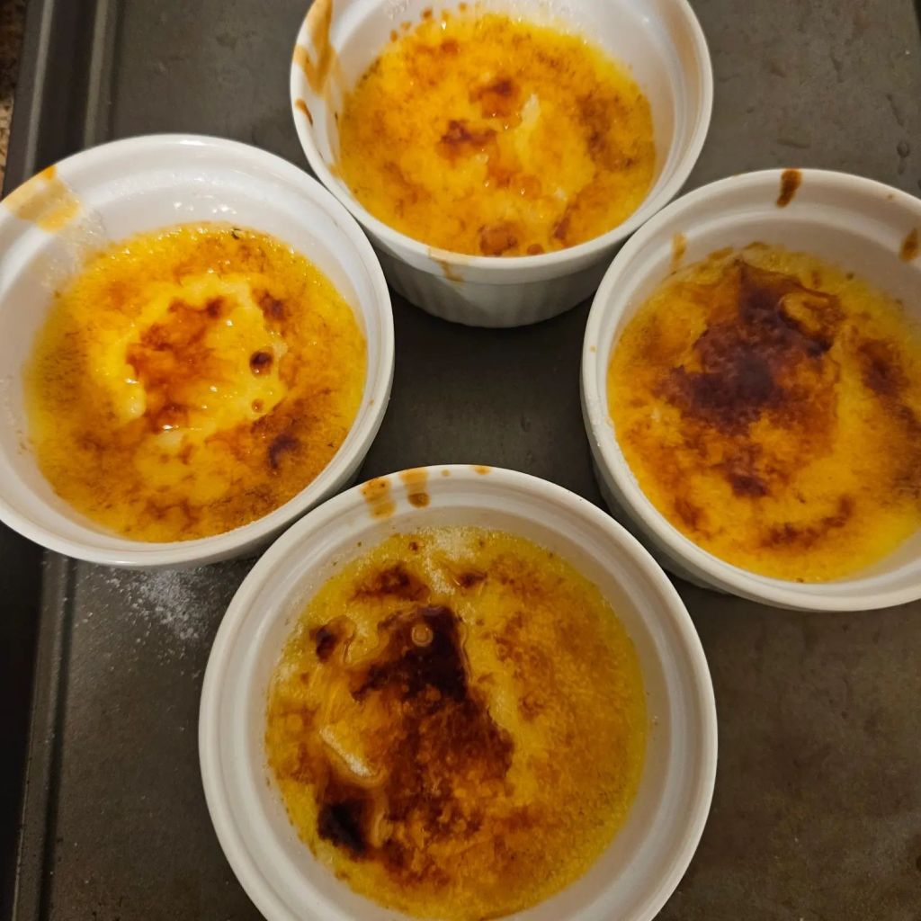 For this recipe you will need the following: 4 ramekins, 4 egg yolks, 2 cups heavy whipping cream, 1/3 cup granulated sugar, 1 teaspoon vanilla, and 1/4 cup of sugar for the caramelized topping.